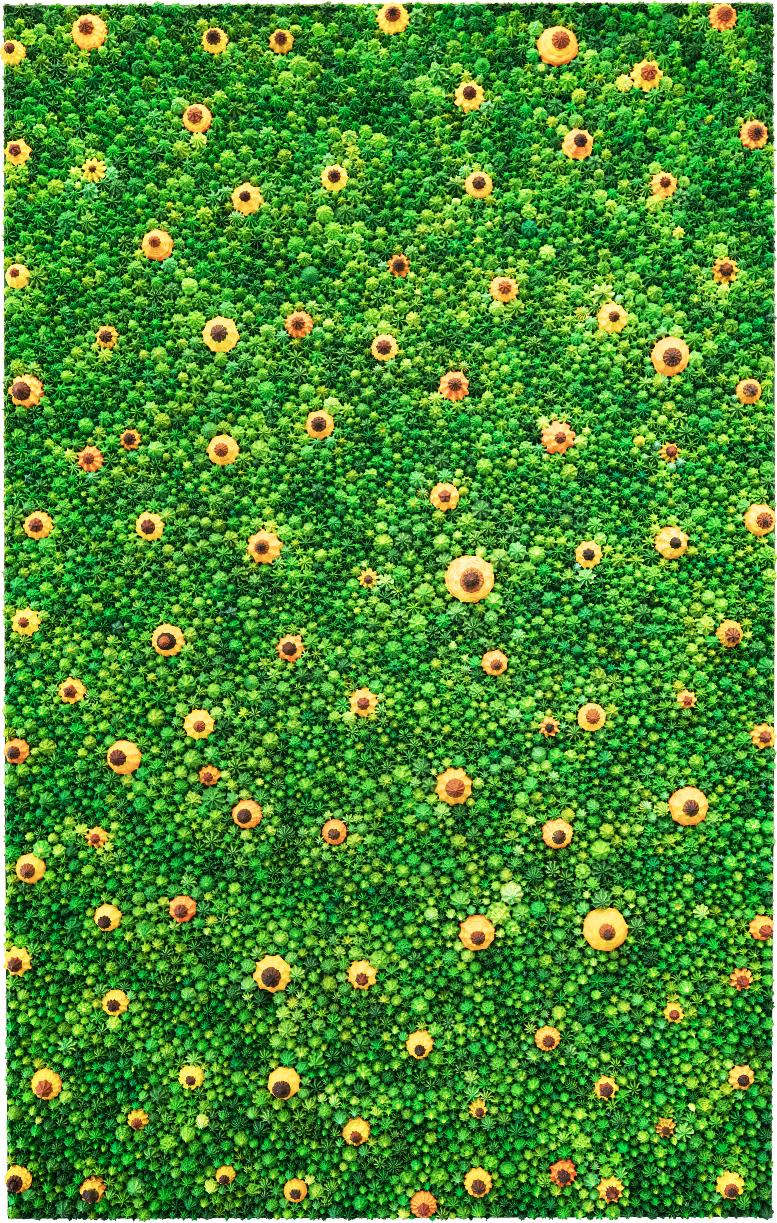 “Seven Lucky Sunflowers” (2018) Los Angeles. Oil Acrylic House Paint Gouache Watercolor on Canvas