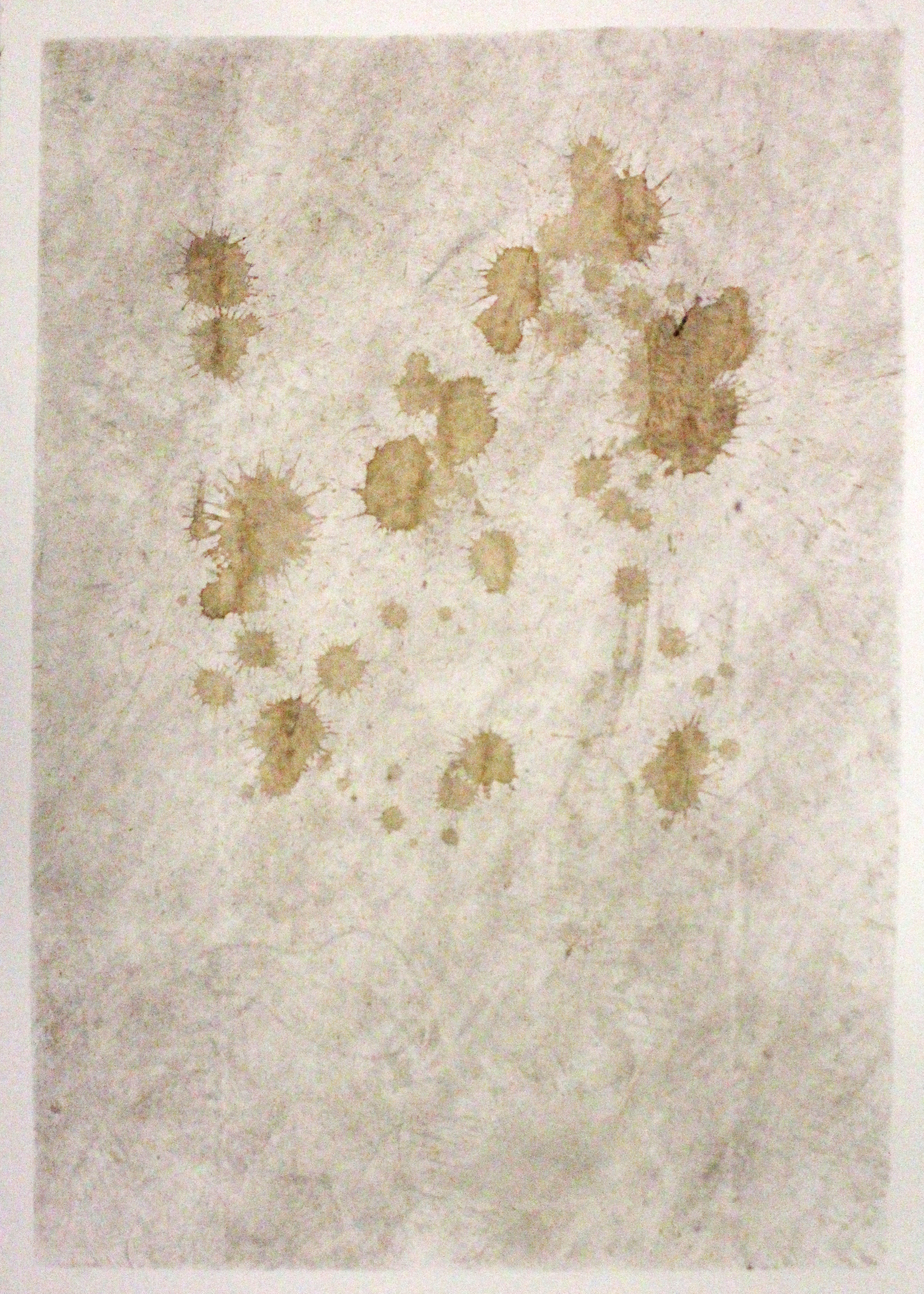 Coffee Break. Shoe Dust and Coffee Spill on Paper. 30 by 22 inches. Kamloops. 2013